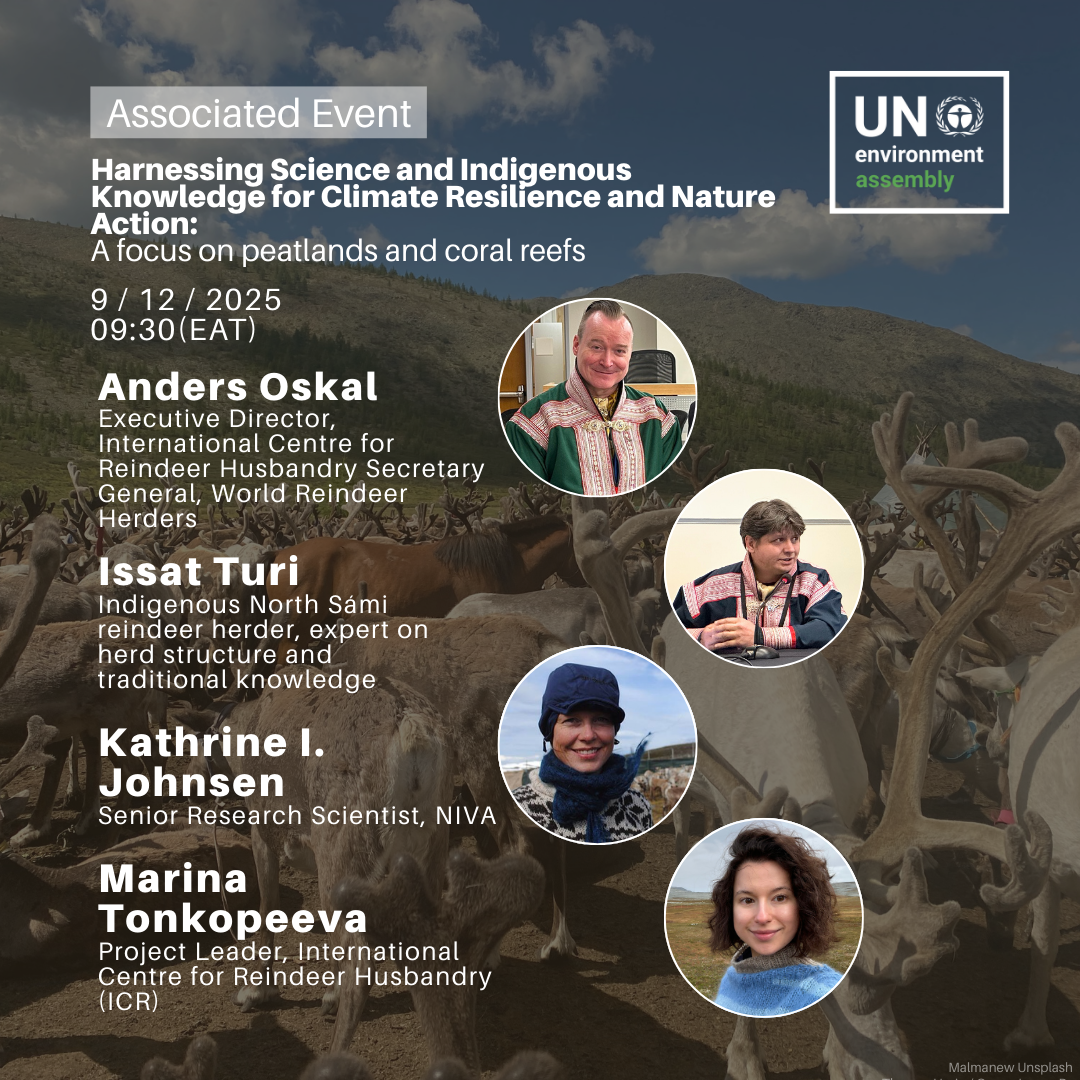The Reindeer Herding and Resilience (RHR) project team is participating in UNEA-7 and will speak at the associated event, “Harnessing science and Indigenous knowledge for climate resilience and nature action: A focus on peatlands and coral reefs”.